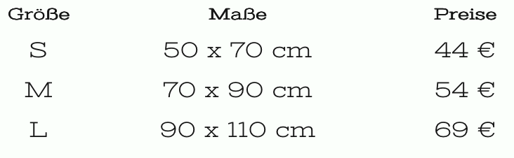Die Kuscheldecke für eure Pfotenfreunde ist in folgenden Größen erhältlich.