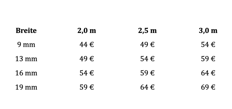 Der Preis von Retrieverprodukten ist abhängig von Breite und Länge