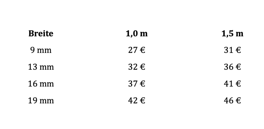 Standard (Bolzenkarabiner, 1 Farbe, 16 mm Breite): 16 €